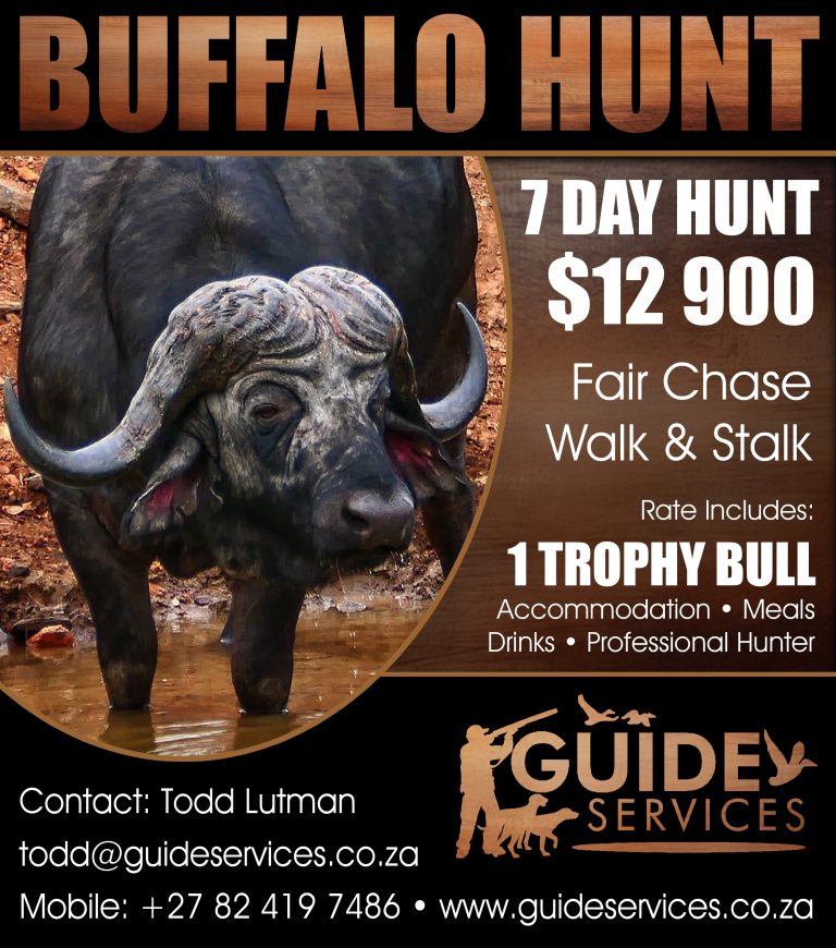 Trophy hunting is available year-round in South Africa, although our summer months (Nov through Feb ) tend to be very hot and is also our rainy season. The best period is from March through end October. Due to the vastness of all the areas, the locating of free range game is done by traveling in a Land Cruiser hunting vehicle from where all hunting is done on foot. Find out more about South Africa Hunting and South Africa Hunting Prices by getting in touch with Todd Lutman and Guide Services.